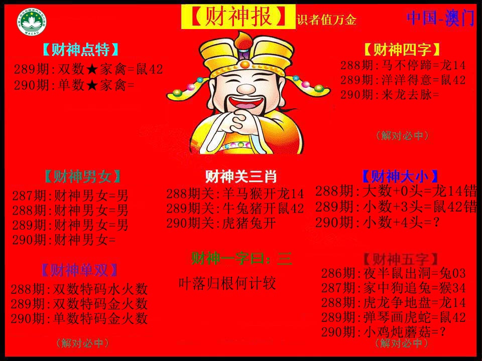289期: 买啥都中 【大数大数大数】开:鼠42准 |